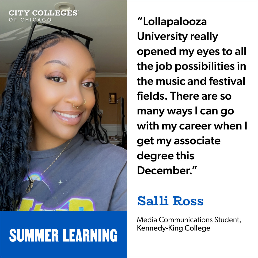 Throughout the program, Salli and her peers engaged in lectures, documentaries, and in-depth discussions in the classroom at Kennedy-King College, then ventured downtown to immerse themselves in the vibrant atmosphere of Lollapalooza.