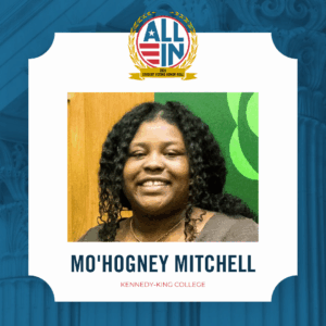 Kennedy-King College Student Government Association President Mo’Hogney Mitchell has been named to the ALL IN Campus Democracy Challenge’s 2026 Student Voting Honor Roll.